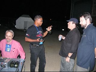 Time to fire up the Tea Cart Rocket. They're going through the "setting off the rocket" check list. Note the fire extinguisher, and hearing protection already on most people.